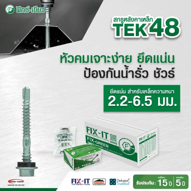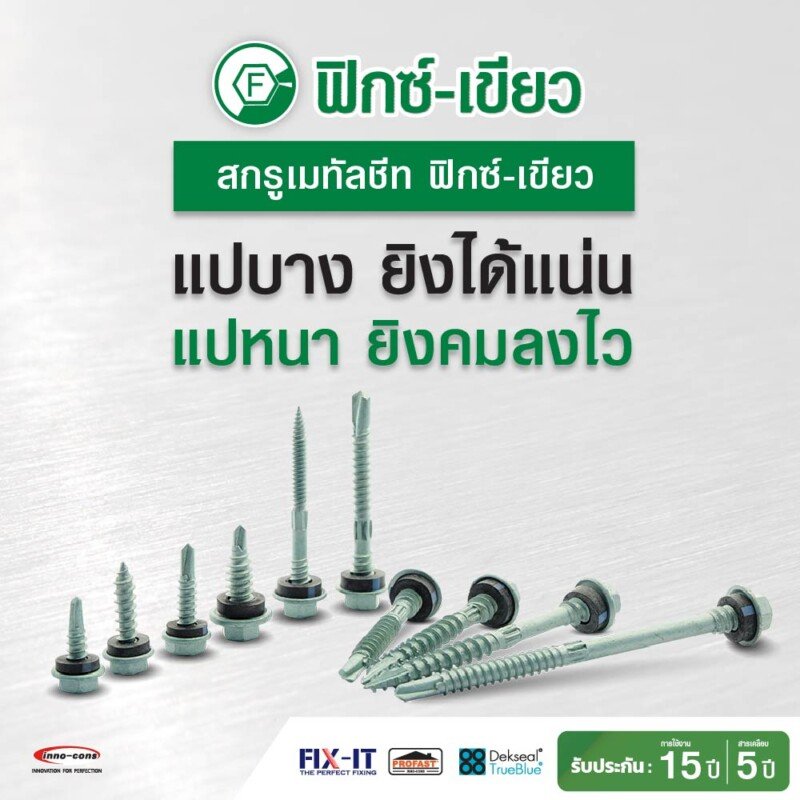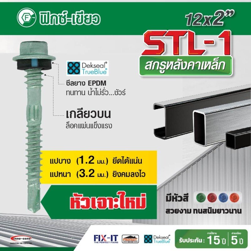• หัวสีกลมกลืน สวยงามเข้ากับแผ่นหลังคา ทนทาน ไม่หลุดร่อน