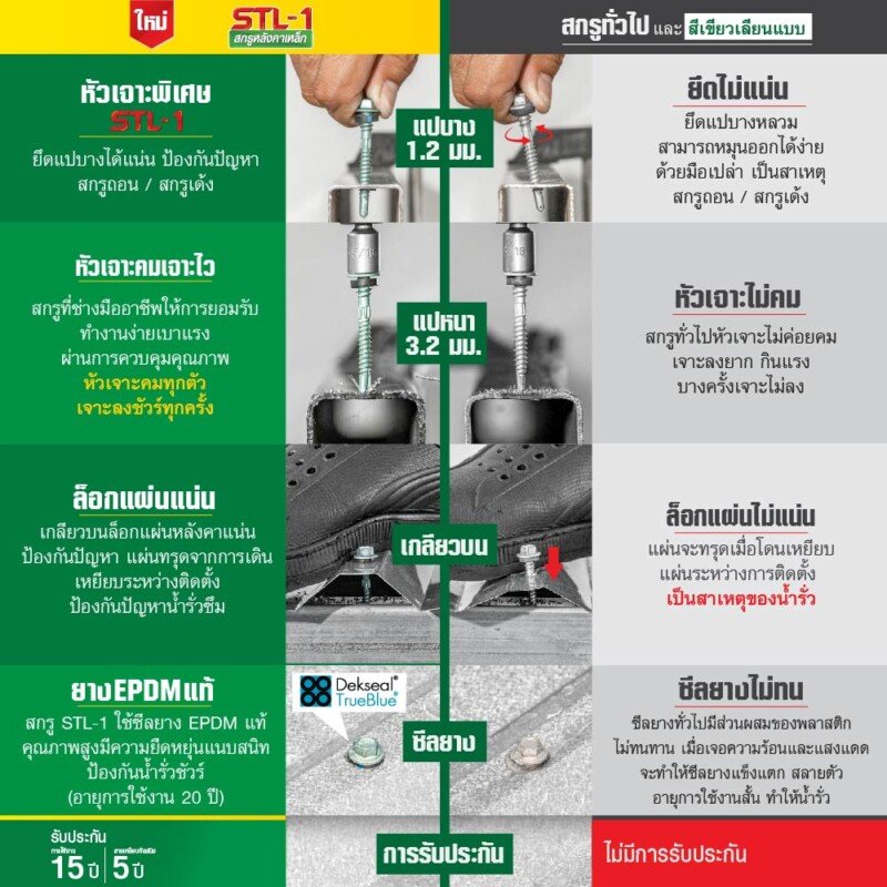 • ยึดได้แน่นไม่ว่าจะเป็น แปกัลวาไนซ์ หรือ เหล็กดำ