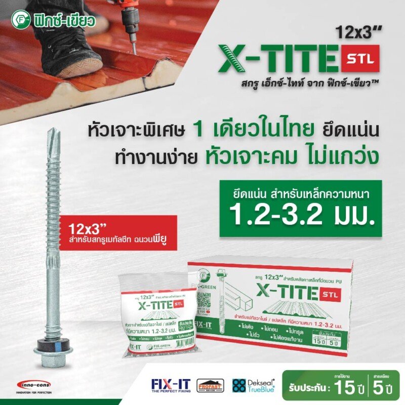• เกลียวบน ล็อคแผ่นหลังคาได้แน่น
